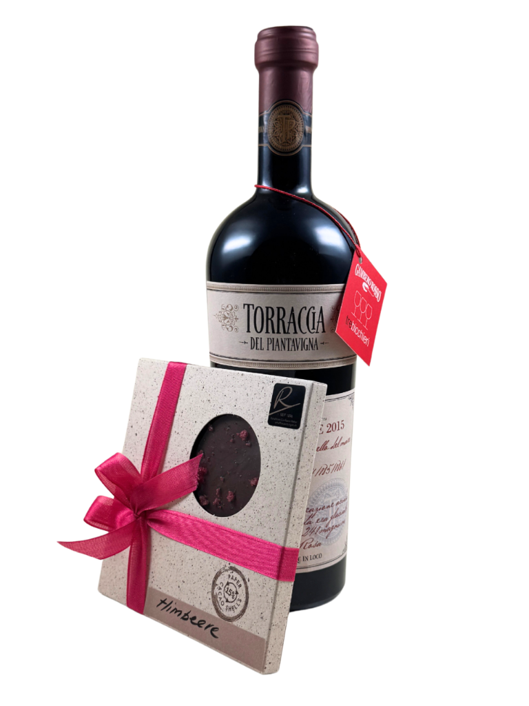 Set 10 Geschenkpakete für Weihnachten 2025- Piemont 1 Ghemme Vigna Pelizzane 1 Reber Tafelschoki Himbeer