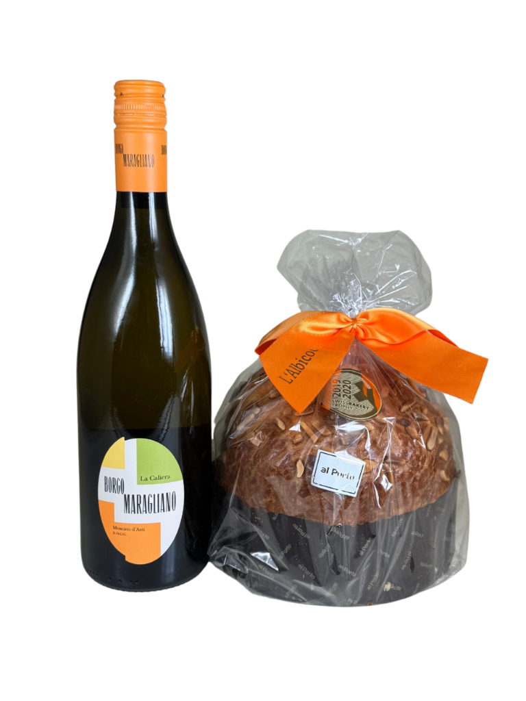 Set 3 Geschenkpakete für Weihnachten 2025- Moscato 1 La Caliera, Moscato d'Asti DOCG 1 Panettone Aprikose (Al Porto)