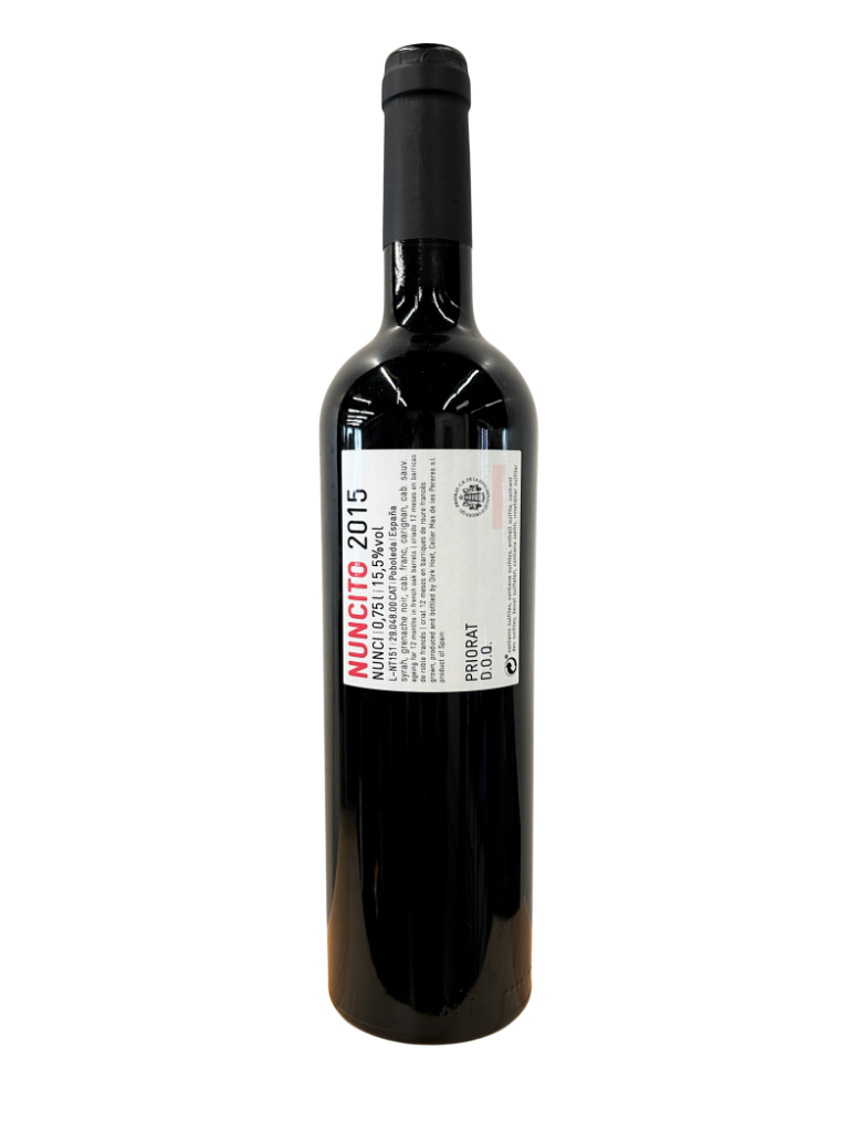 Der Nuncito wird aus Trauben der jüngsten Rebstöcke vinifiziert. Eine lange temperaturkontrollierte Maischegärung und danach ein Ausbau in französischen Barriques (ein- bis dreijährige) von ca. 12 Monaten ergeben einen klassischen Wein des Prioratgebietes: Kraftvoll und Eigenständig.